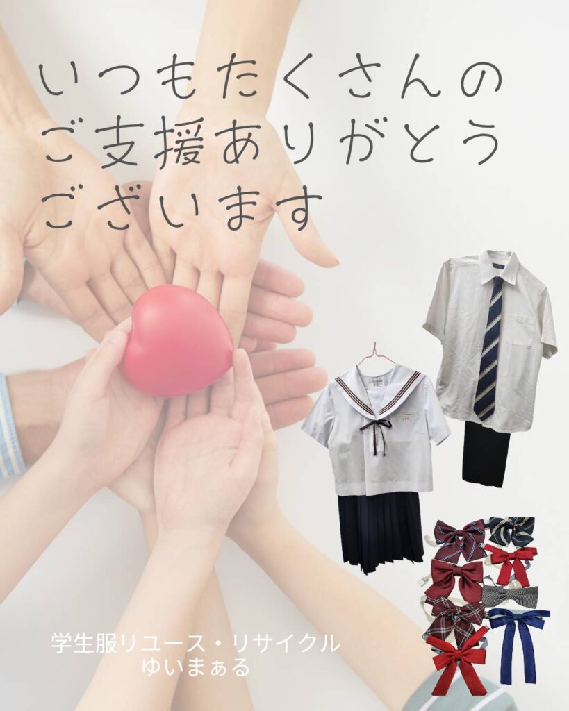 ゆいまぁるでは、皆さまの思い出が詰まった不要になった学生服を次の方へ繋ぐお手伝いをしています🤲