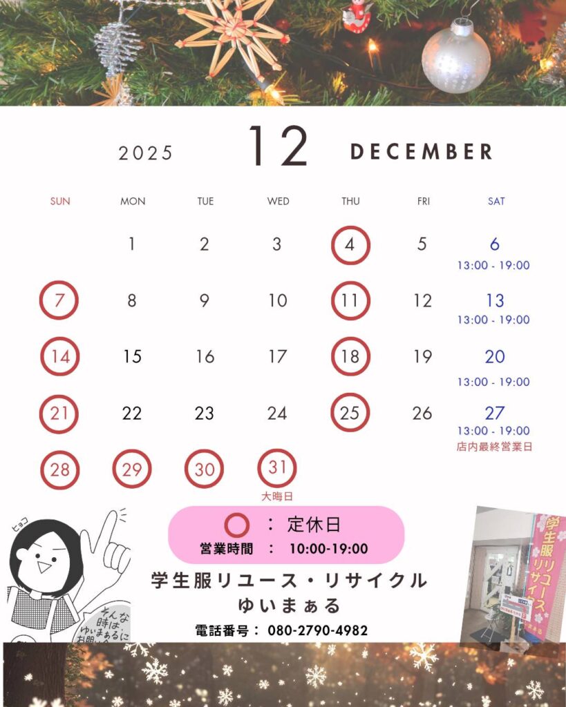 本日は12月の営業日カレンダーと年末年始のお休みのお知らせです📅